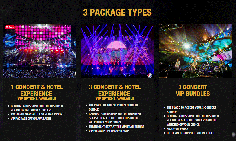 Pricing varies, depending on the package and section choice, and whether you choose VIP tickets-only, or a whole Vibee VIP bundle of tickets and hotel. For example, the final weekend of July 11-13th runs $3,598.83 per person for a 3-night-stay in a double occupancy room at the Venetian or Palazzo Tower in a luxury suite for up to 4 guests (excluding a daily resort fee). Included in this package is a choice of VIP sections with priority entry and “immersive exhibits and a pop-up shop” plus transportation to/from the airport, and other commemorative keepsakes. As tempting as those packages were, many of us jumped on the VIP train for a '‘3 night ticket-only package" which incorporated primo seat position for viewing.